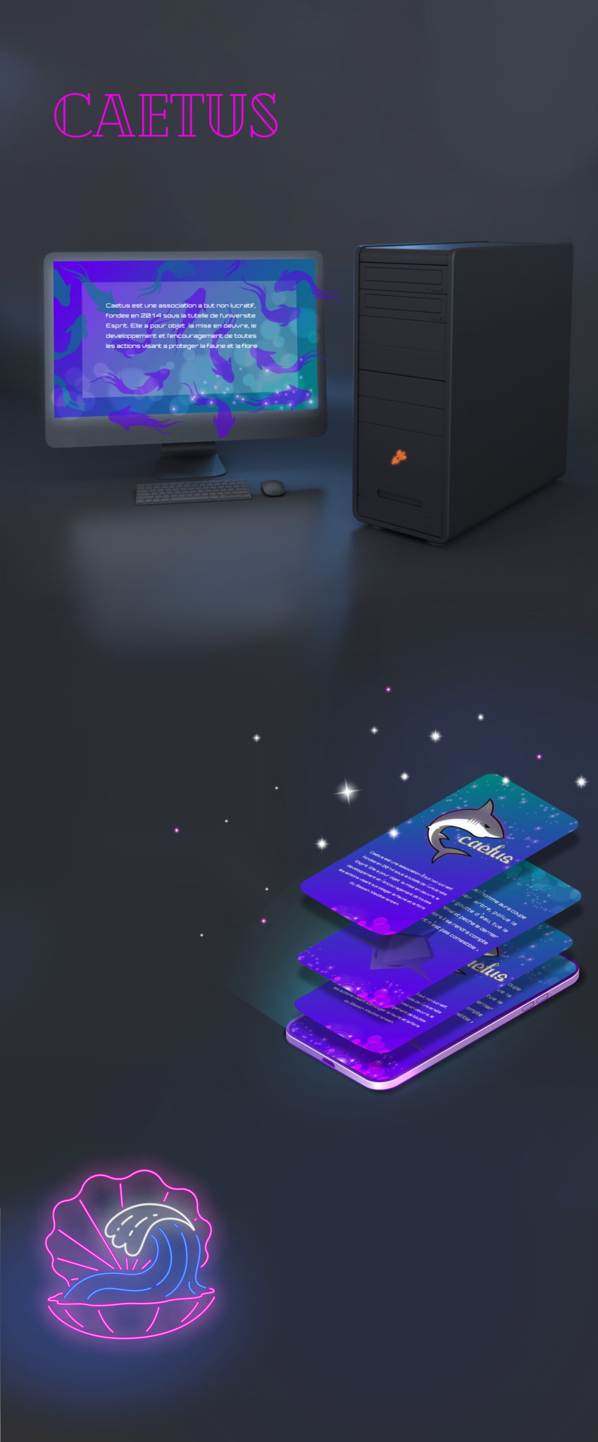 This project is about branding a virtual NGO, and introducing it to the digital world, by imagining a mobile application and a website that would appeal to the young generations. The visual concept represents the treasures underwater, which are our natural resources. The name "Caetus" means Shark in latin, as this creature, often portrayed violent and blood-thirsty, is in reality defenseless and harmful most of the times.