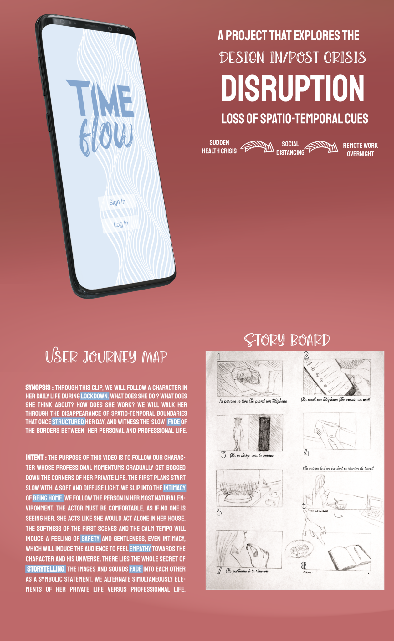 When COVID struck, it was an abrupt disruption of the way we live our daily lives. People were forced to work from their homes, which, back then was still a foreign concept. The days started to have no end and no beginning as there were no clear structures anymore. This project aims to support different types of individuals to structure their day, and put clear boundaries between personal and professional activities.