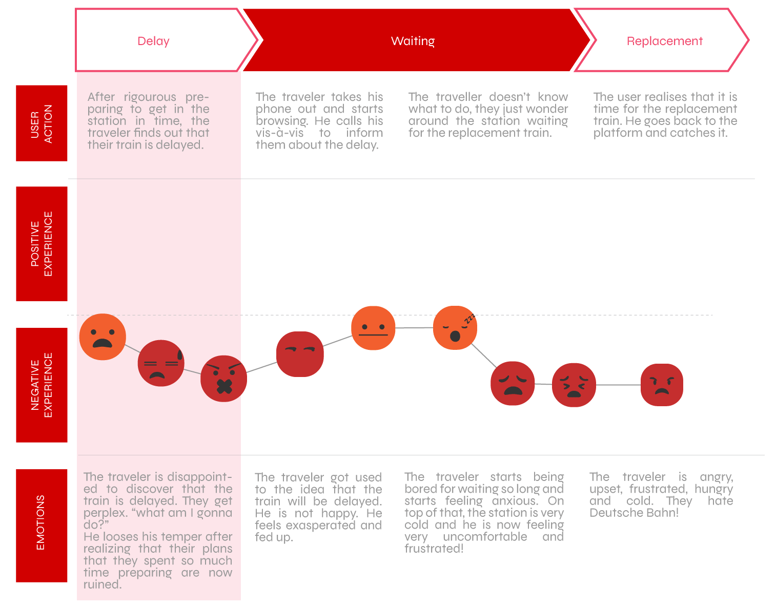 Even one of the greatest leader companies in Europe could come with its own shortcomings. One of the challenges of Deutsche Bahn was with punctuality and its chaotic causes, as well as its consequences. Our challenge was to metamorphose this moment of worry for the passengers into a useful time that they can take advantage of to do something meaningful.